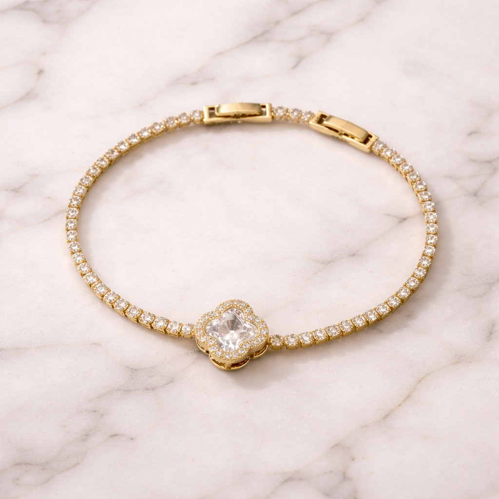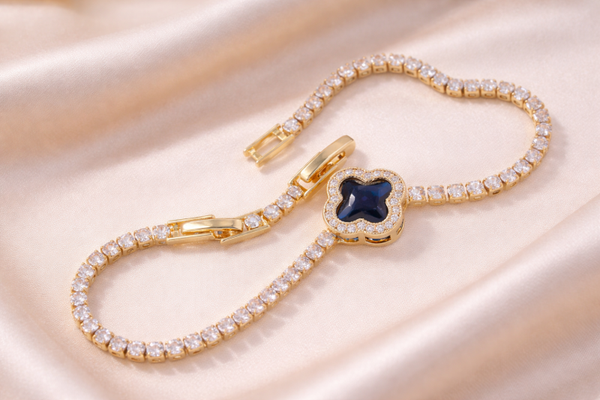 This bracelet is made from brass with zircon stones and is designed for fashion wear. To preserve its appearance and longevity, we recommend: