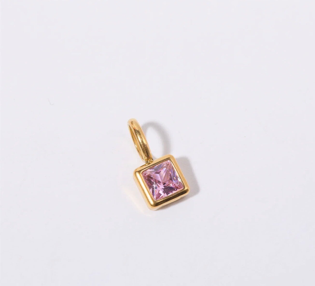 October Glow Pendant – Soft Pink Crystal Charm Stainless Steel Minimalist Chain